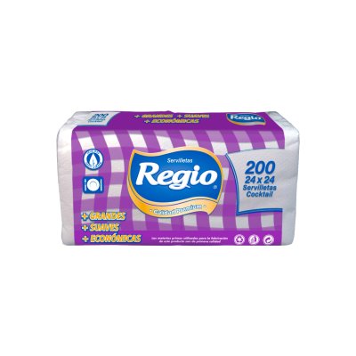Servilleta Cocktail Regio Premium Blanco 24×24 cm Paquete de 200 Unidades